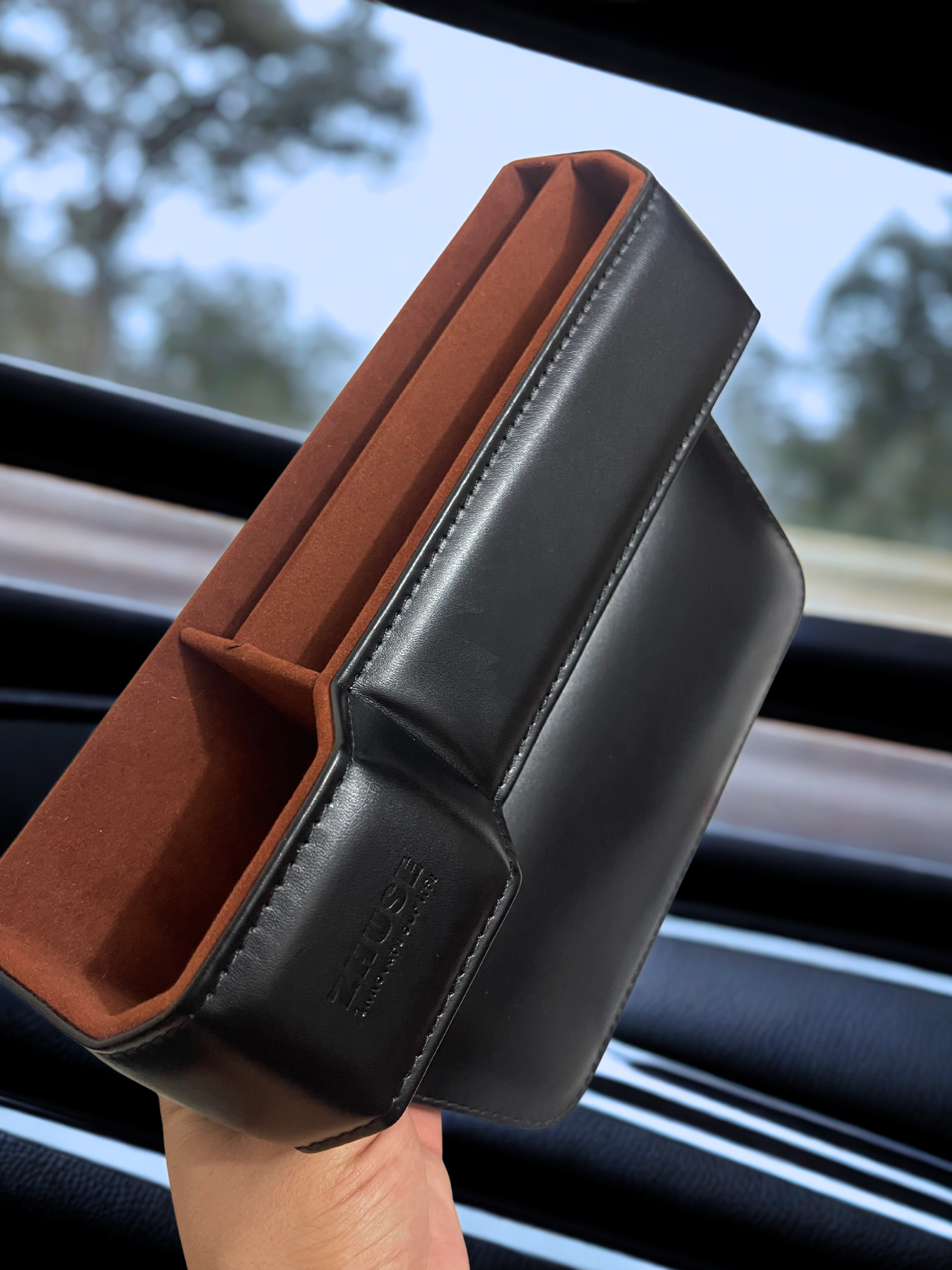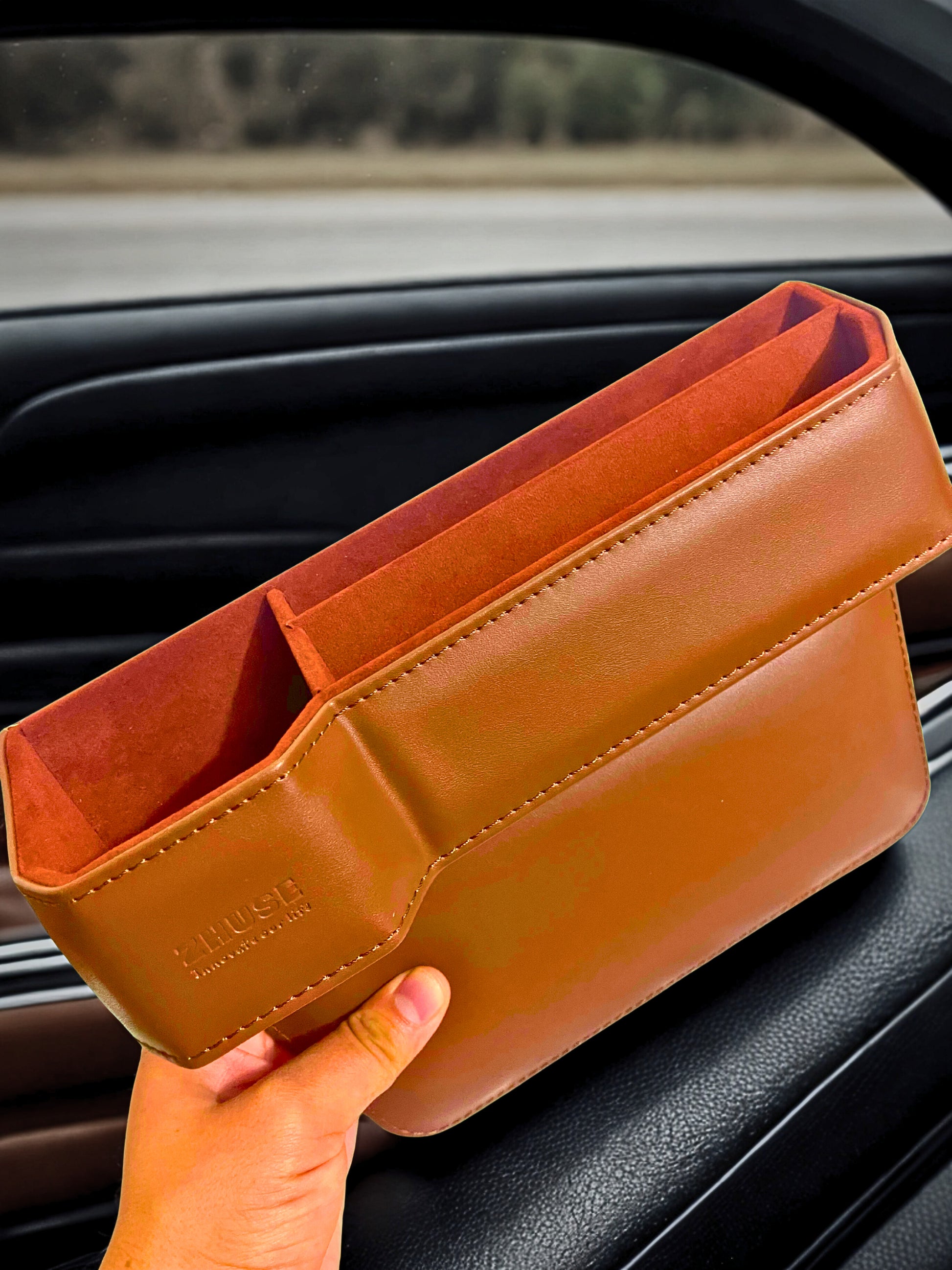 حامل اغراض من الجلد مع مكان لتثبيت الاكواب